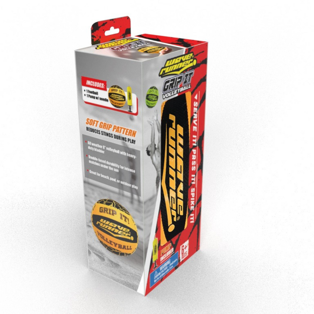 Wave Runner Grip It Volleyball 20cm with pump (deflated) Asst - WRV800-PUM The waterproof 20.3cm volleyball is perfect for playing in or out of the water.Strong grip material and soft texture provide great control when bumping or spiking the ball.Take it to the beach, pool, or park for endless hours of fun! Includes:1 x BallV1032-WR-VOLLEYBALL_WRV800-PUMPlease note: This is an assorted item. Item will be selected at random