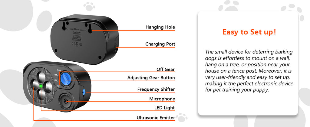 When your dog barks within the selected range, the device's microphone detects the sound and automatically emits an ultrasonic frequency. Dogs typically find this sound irritating, prompting them to stop barking to avoid the unpleasant noise. With consistent use, dogs learn to associate their barking with the ultrasonic sound and reduce their barking behavior.