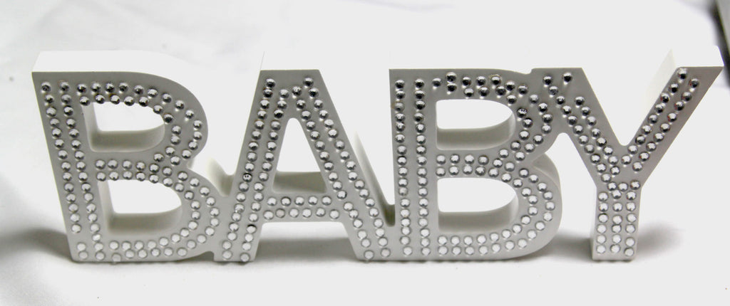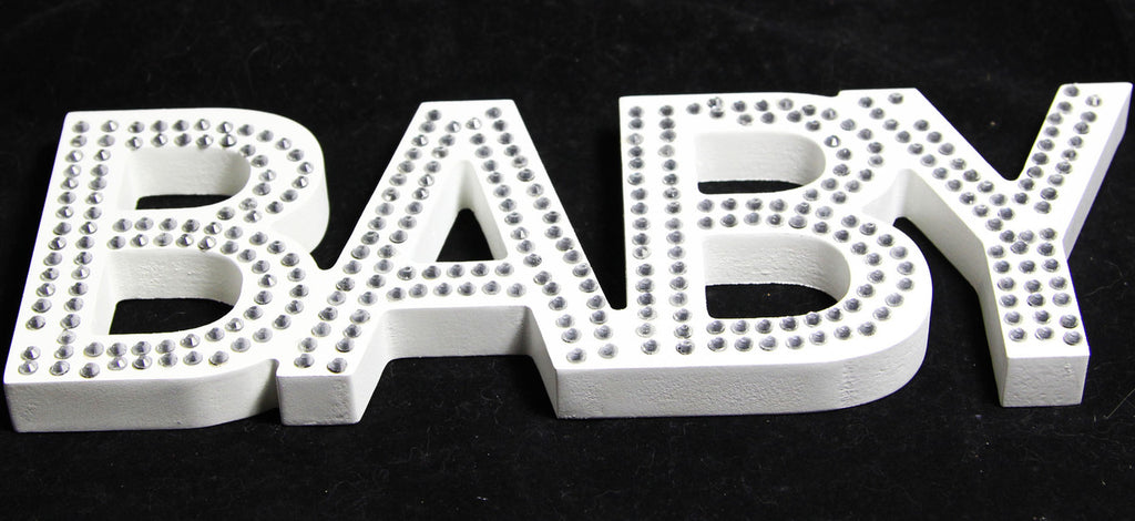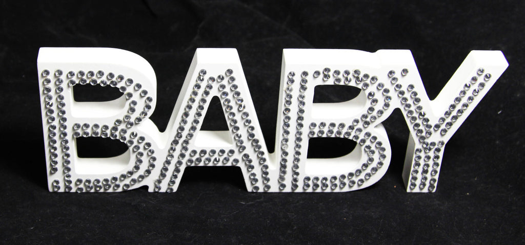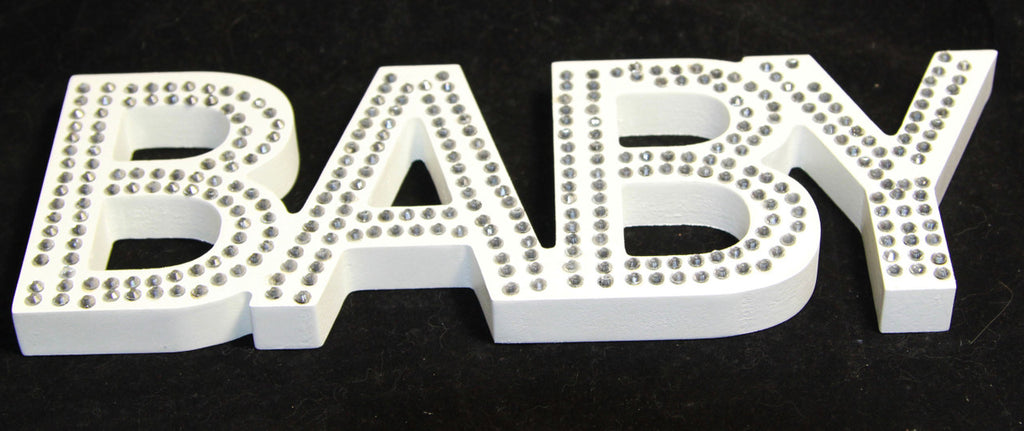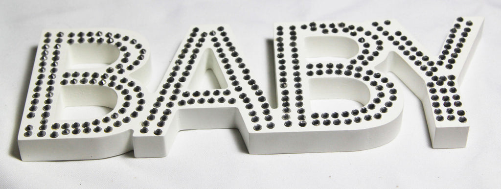 White Baby Nursery 30cm Sign Plaque Plate with Diamantes Newborn Gift Homeware Bedroom Decoration Wall Art