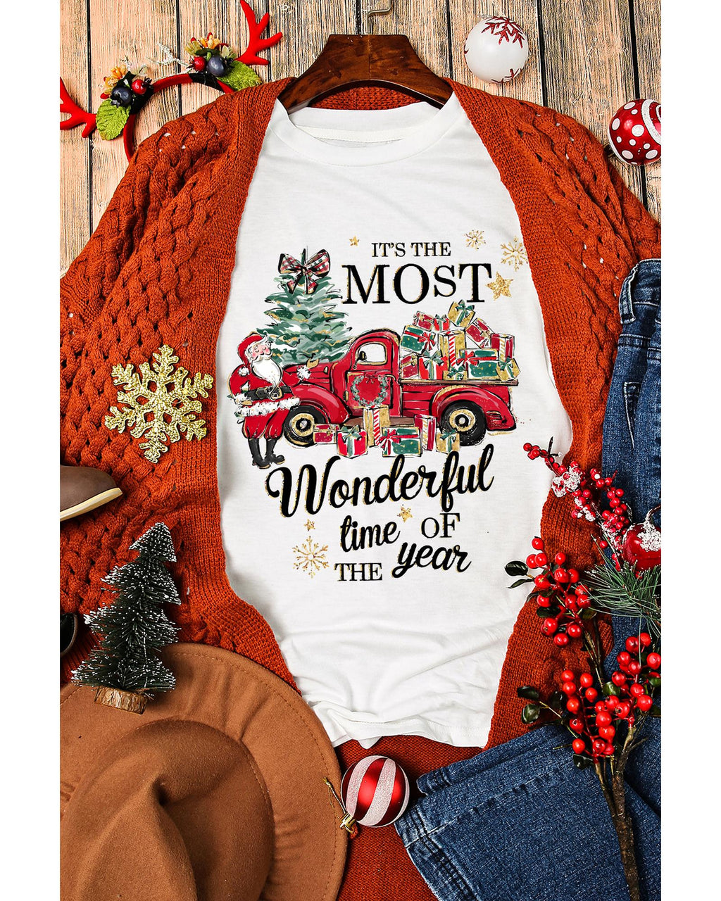 White Christmas Pattern Slogan Print Crew Neck T Shirt - 2XL
