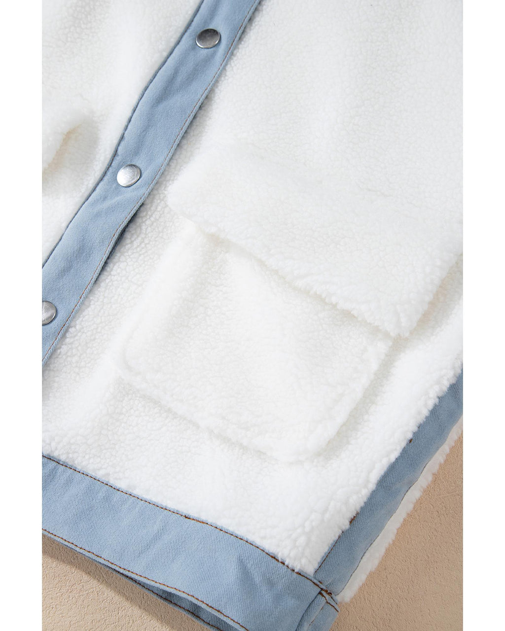 White Contrast Trim Buttoned Sherpa Jacket - L