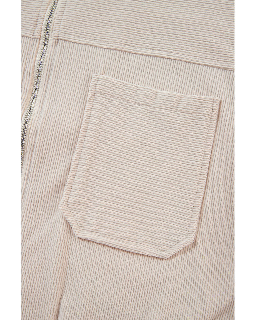 White Corduroy Drawstring Hooded Pocket Zip Up Jacket - S