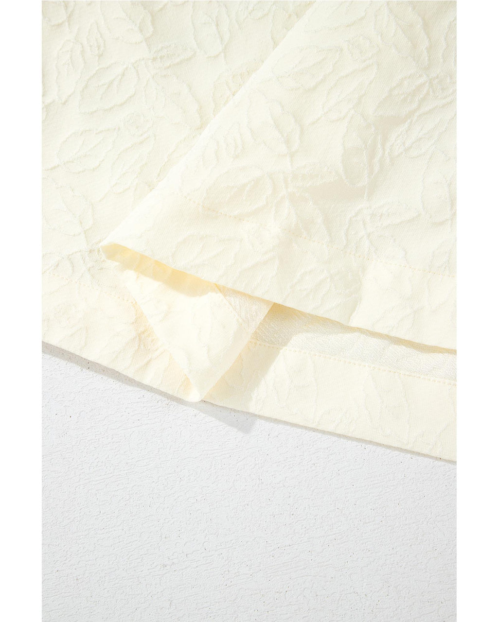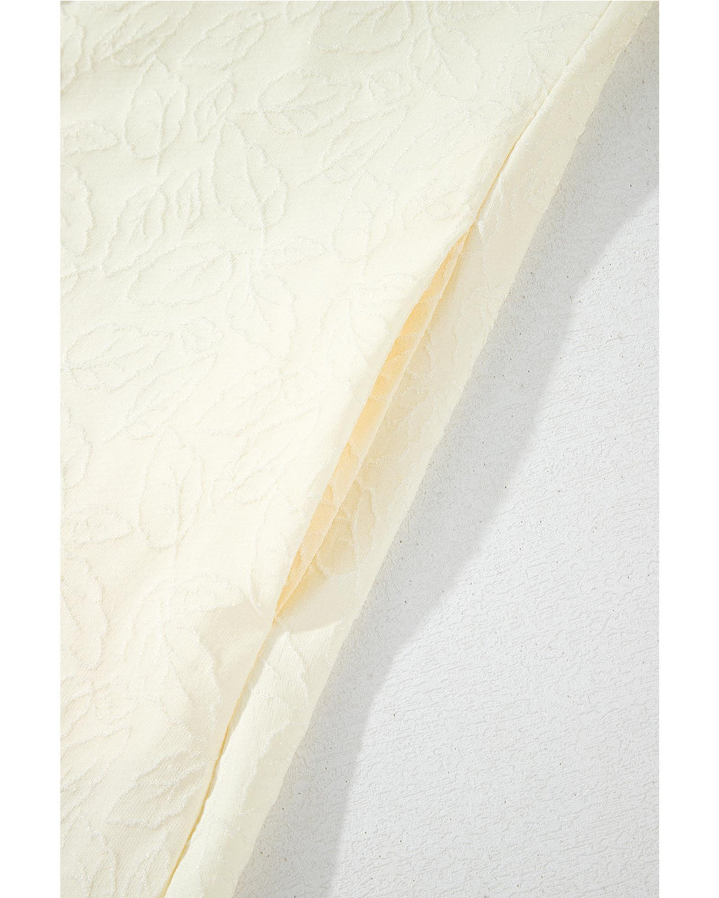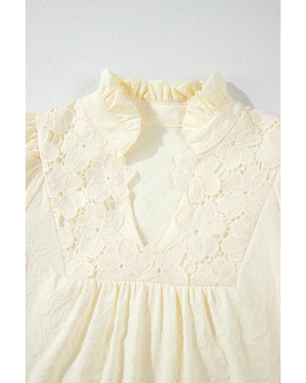 White Floral Textured Bubble Sleeve Frilled Notched Neck Dress - XL