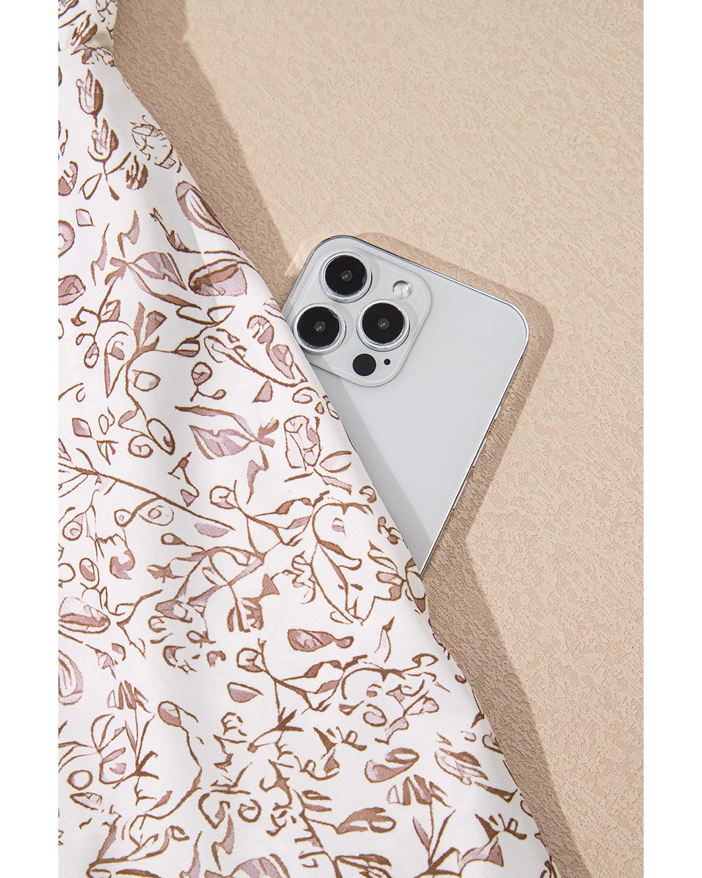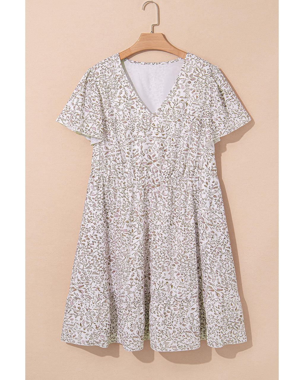 • White Floral V Neck Ruffled Short Sleeve Plus Size Dress