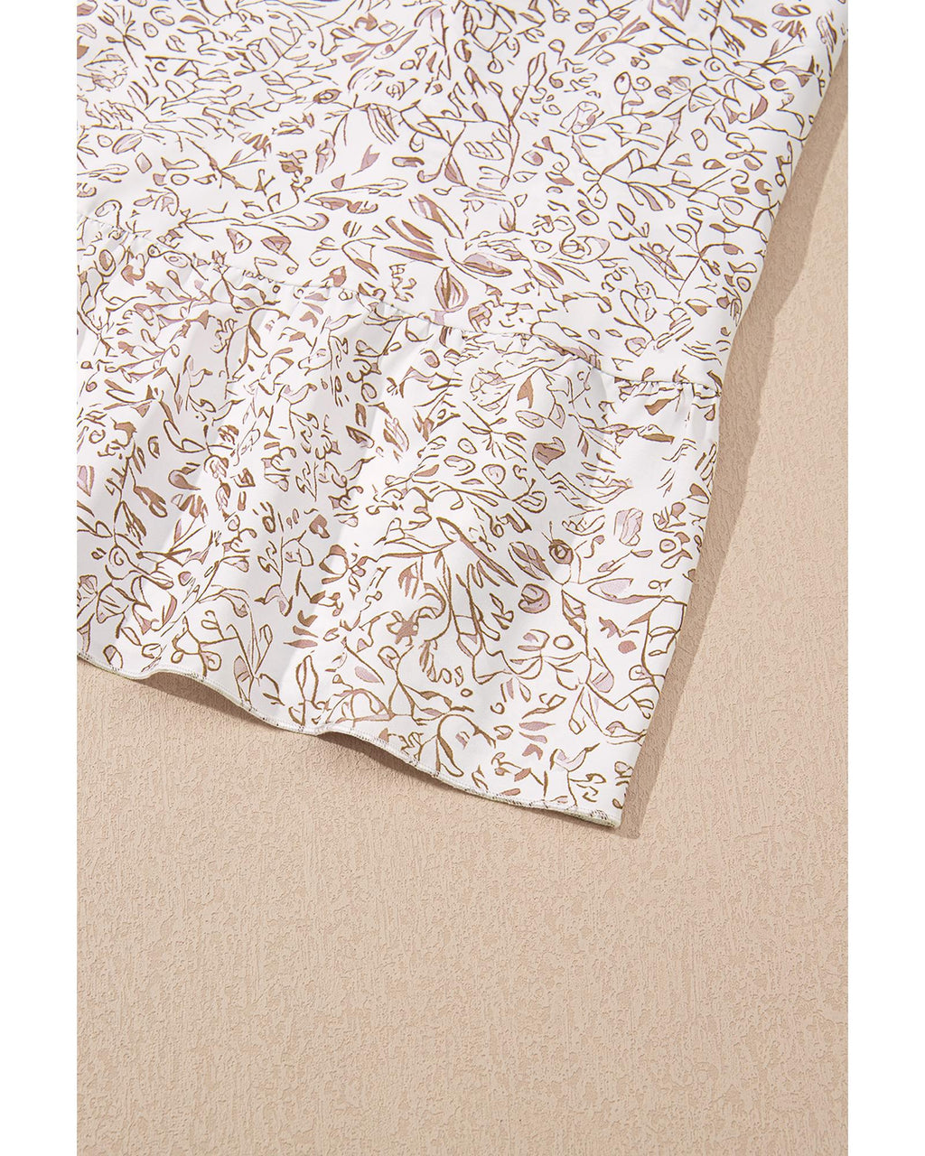 White Floral V Neck Ruffled Short Sleeve Plus Size Dress - 1X