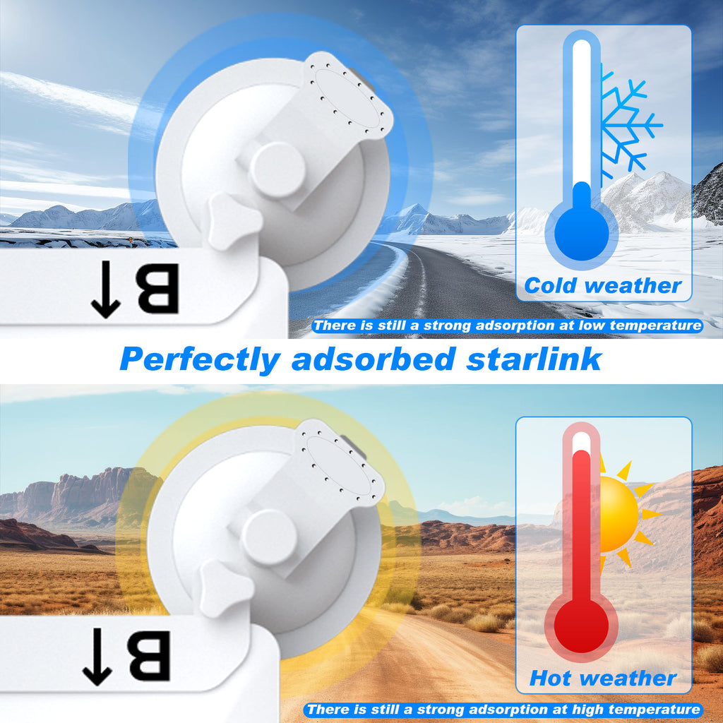 • Exceptional Stability: Equipped with four industrial-strength 65mm suction cups, this mount boasts a massive 20kg maximum adsorption force. It ensures your Starlink Mini remains firmly in place, providing a stable signal even at high speeds or on bumpy terrain.