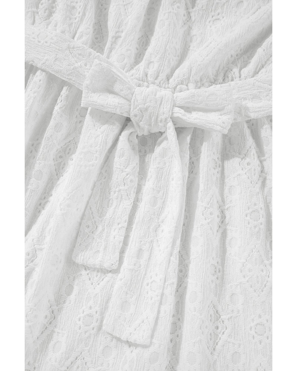 White Lace Sleeveless Knot Hollow Out Back Tied Waist Mini Dress - M