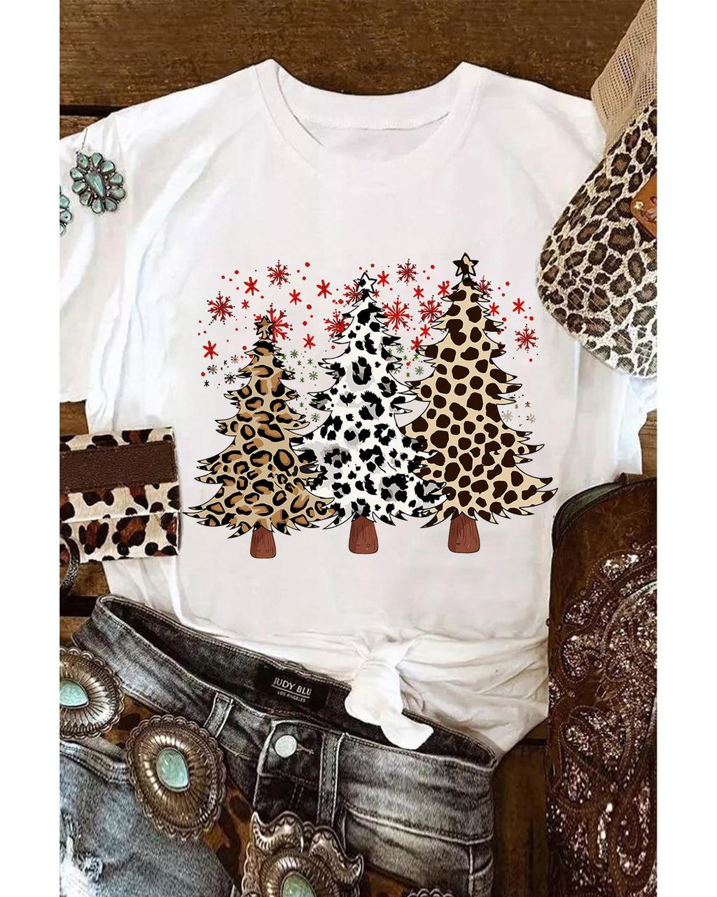 • White Leopard Christmas Tree Graphic Crewneck Tee