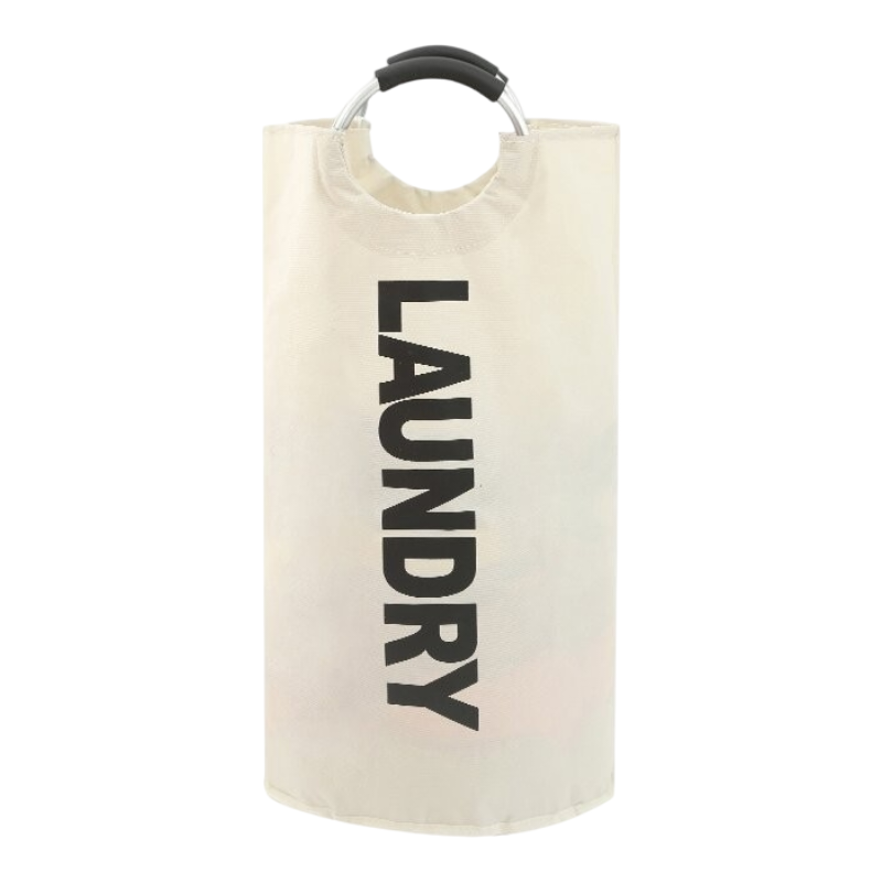 White Oxford Fabric Large-capacity Foldable Dirty Clothes Basket (38×72CM) - With Waterproof Coating & Aluminum Carry Handles For Laundry Room Dorm