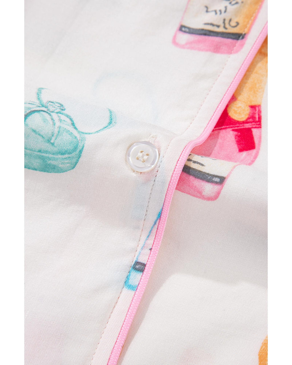 White Plus Size Wine Glass Print Bow Knot Pajama Set - 2X