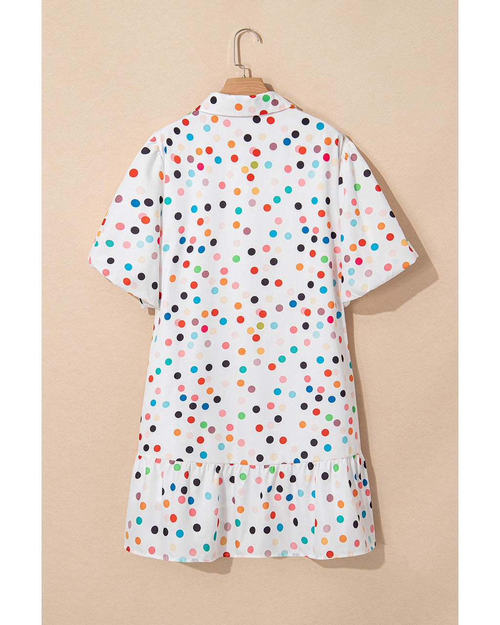 White Polka Dot Print Bubble Sleeve Button Up Plus Size Shirt Dress - 4X