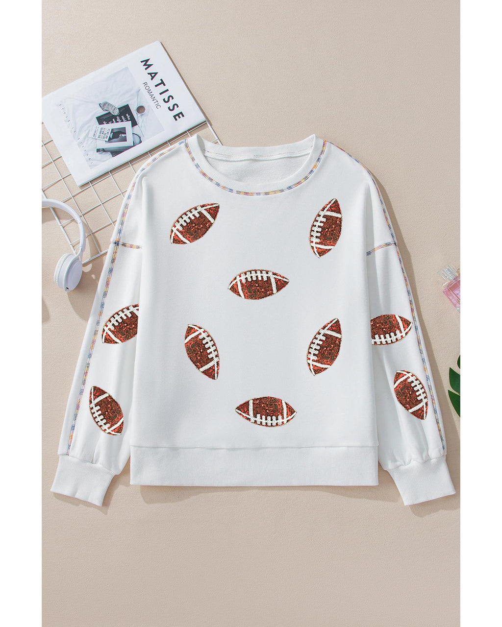 White Sequin Rugby Football Pattern Exposed Seam Game Day Sweatshirt - L
