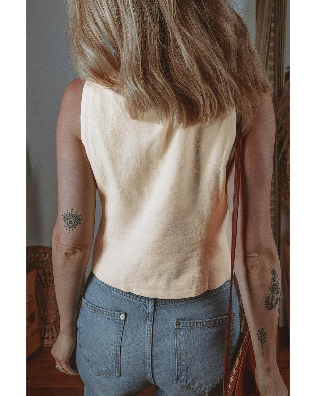 • White slim fit buttoned V neck vest