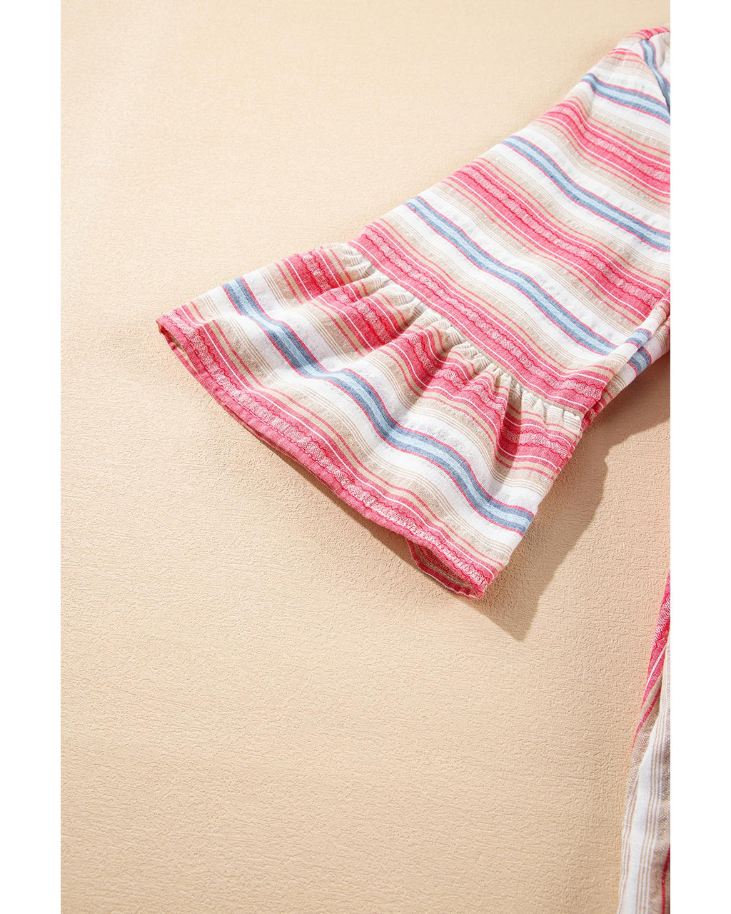 • White Stripe Plus Size Embroidered Detail Flared 3/4 Sleeve V Neck Dress