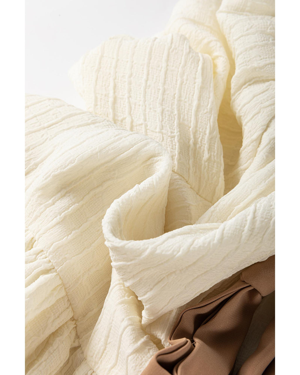 White Textured Bow Ties Front Bubble Hem Puff Short Sleeve Blouse - XL