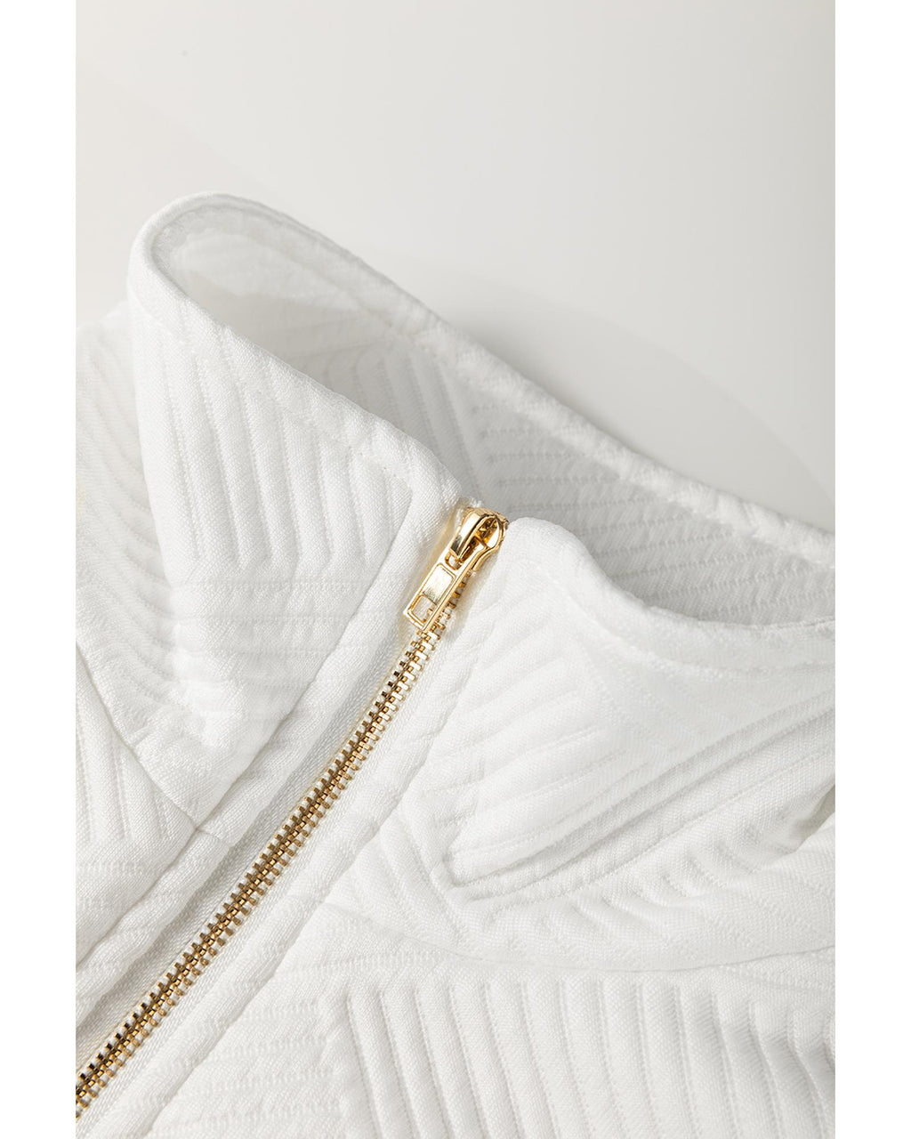 • White Textured Half Zip Collared Cap Sleeve Mini Dress