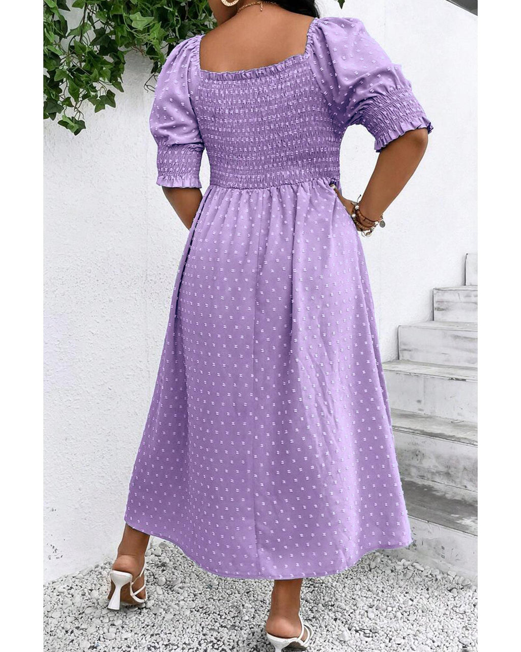 Wisteria Swiss Dot Smocked Frilled Neckline Short Sleeve Plus Size Dress - 1X
