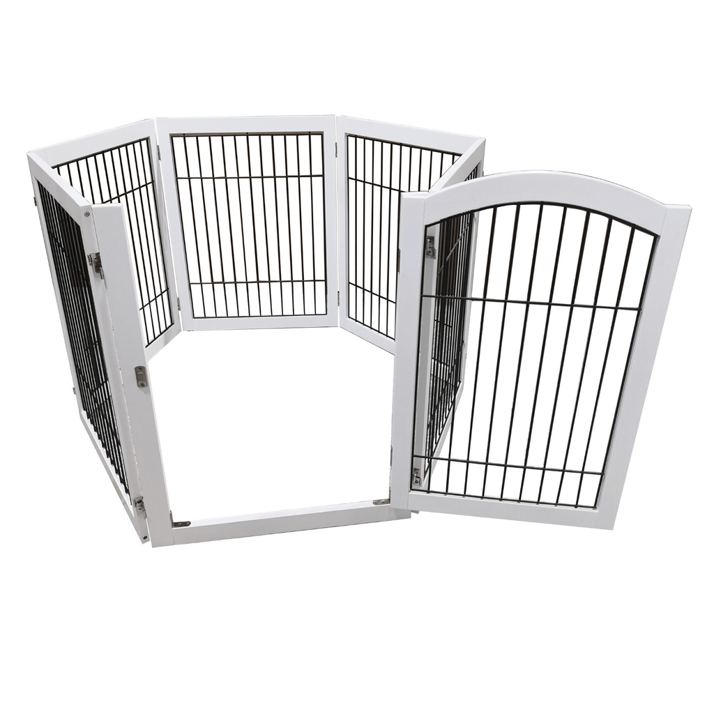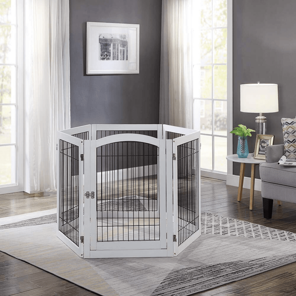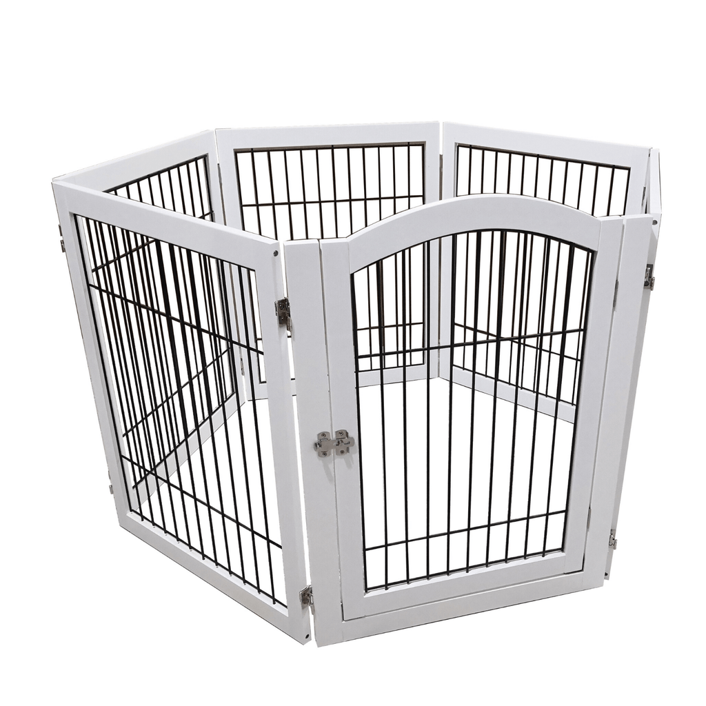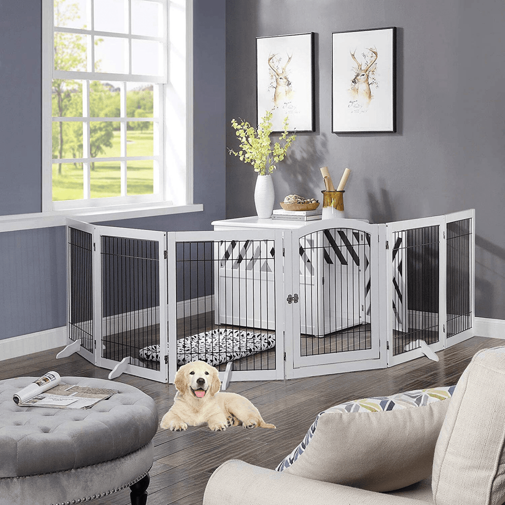 Do you want a pen that will be useful once your puppy grows into his paws? If you answered yes, this classy, six-panel dog gate could be a solution.