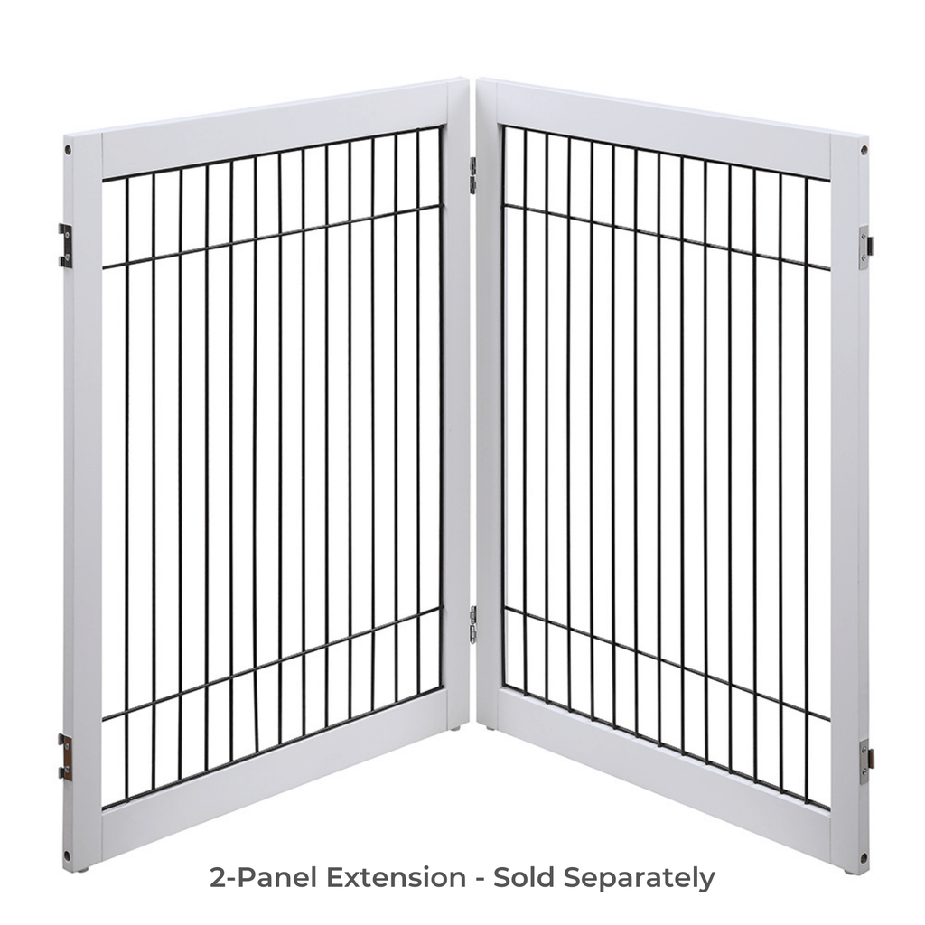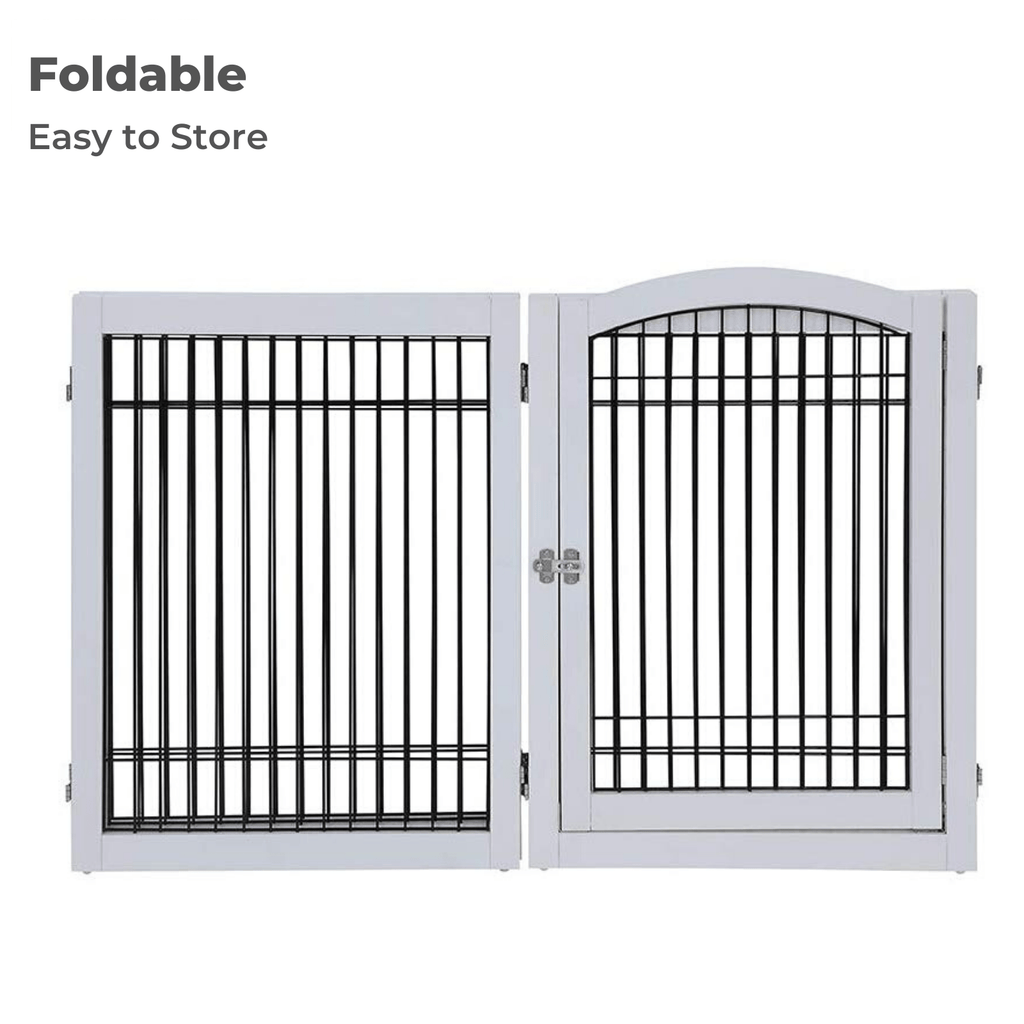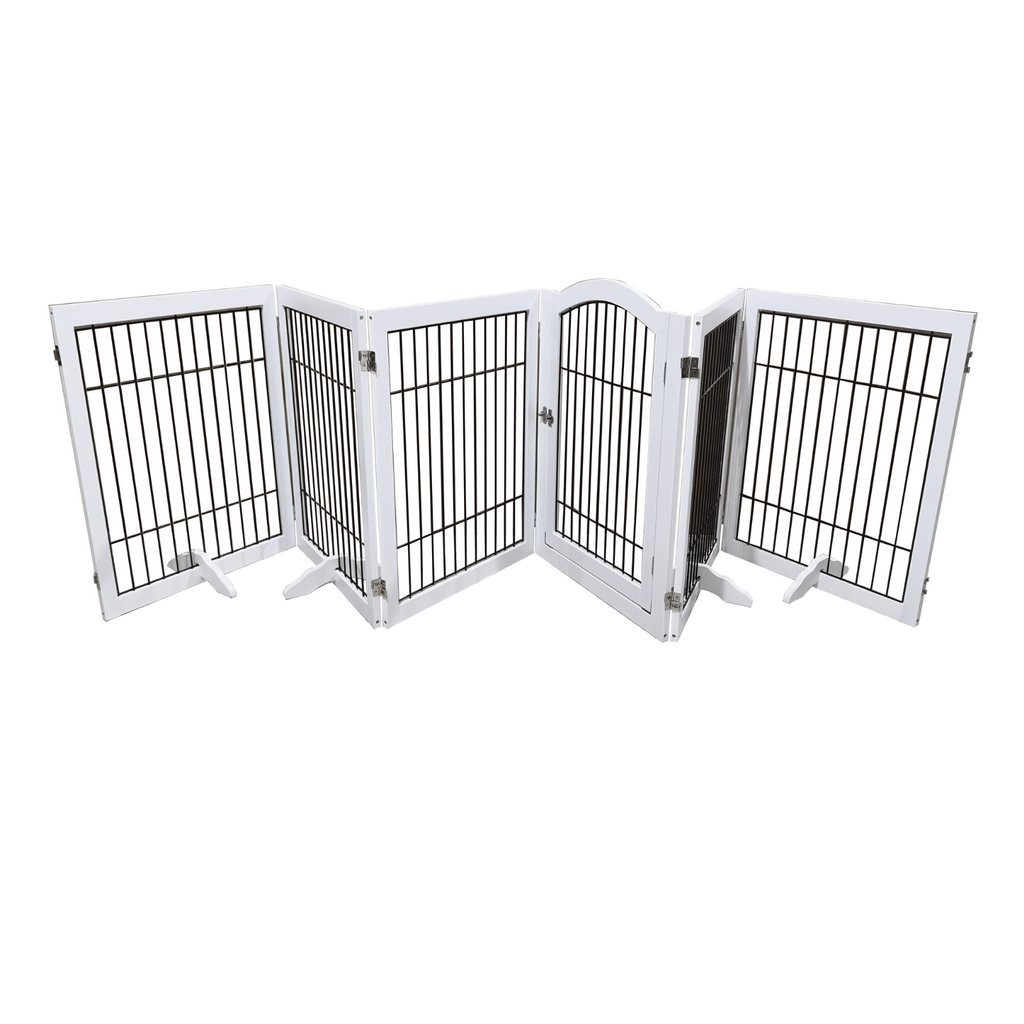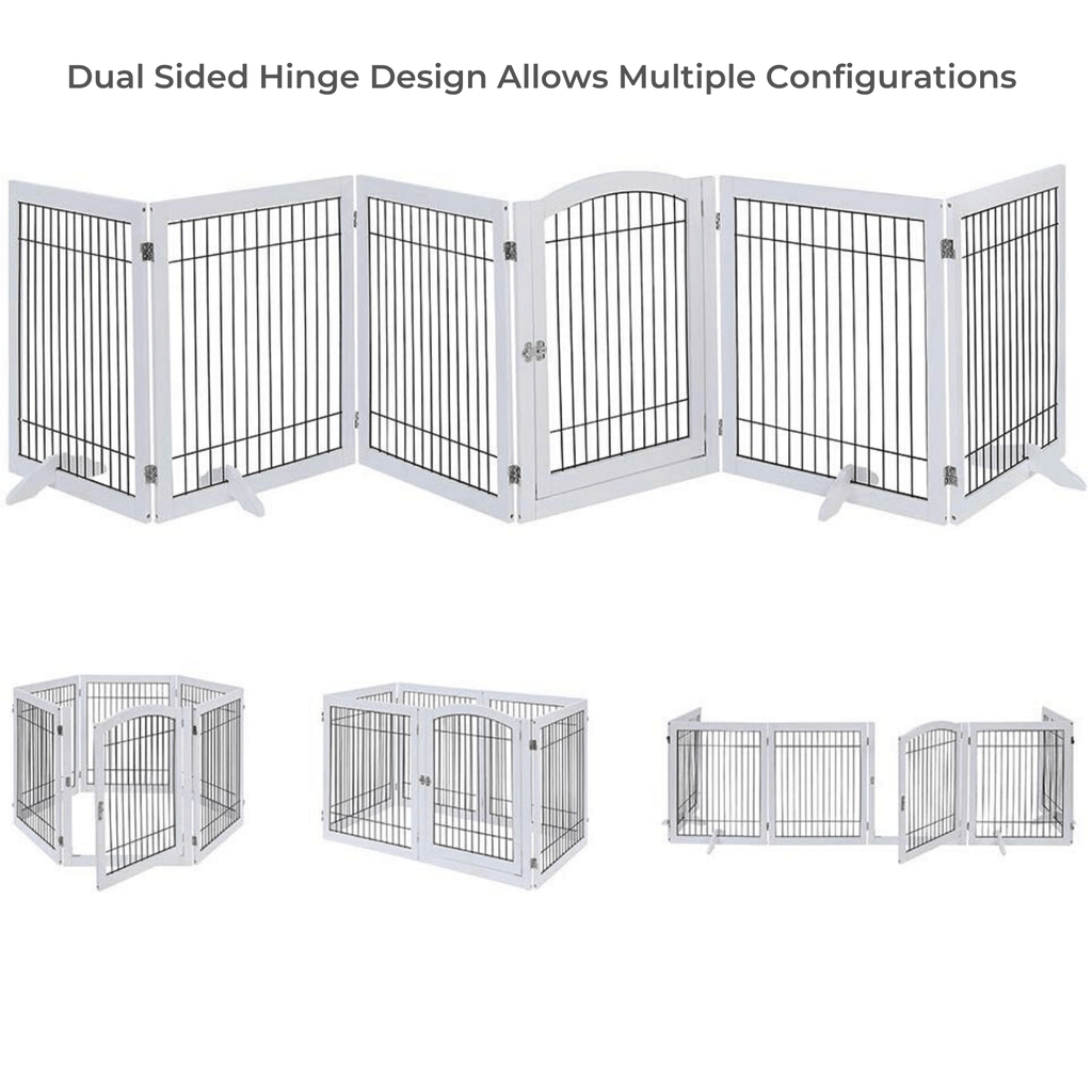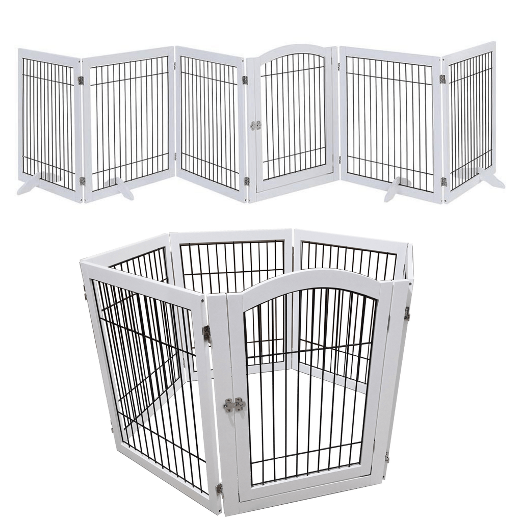 Do you want a pen that will be useful once your puppy grows into his paws? If you answered yes, this classy, six-panel dog gate could be a solution.