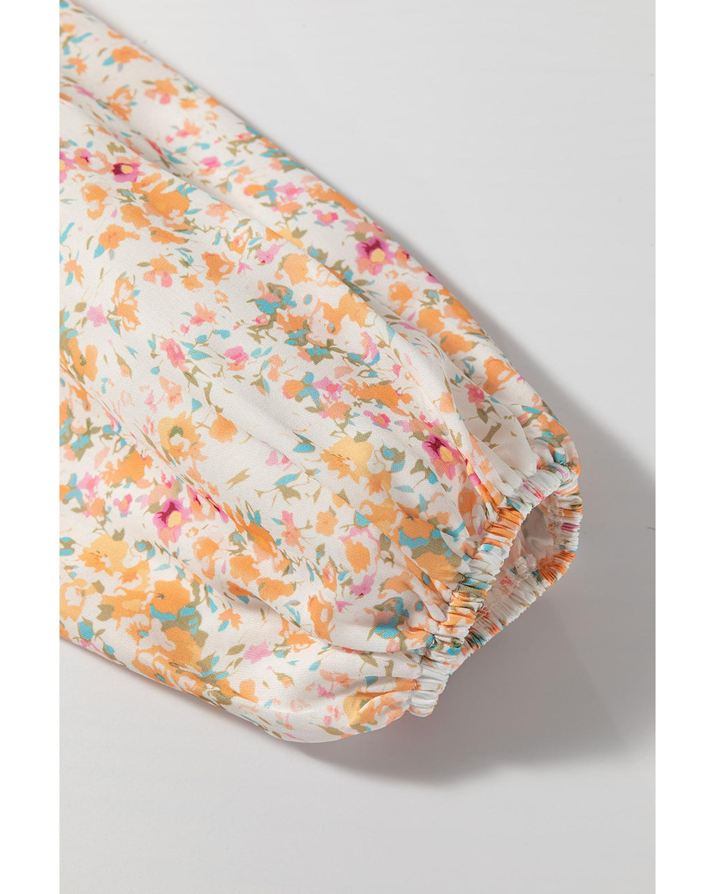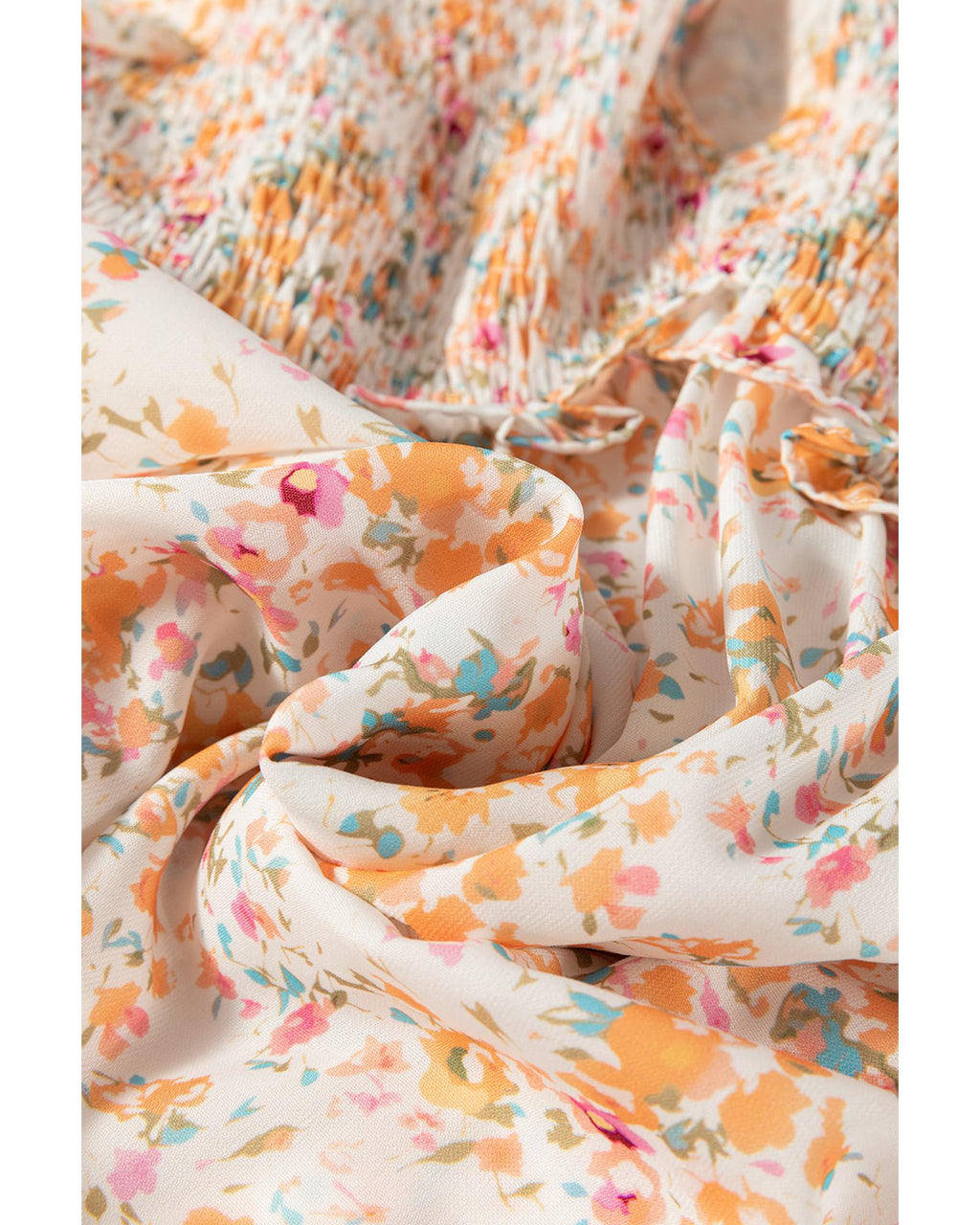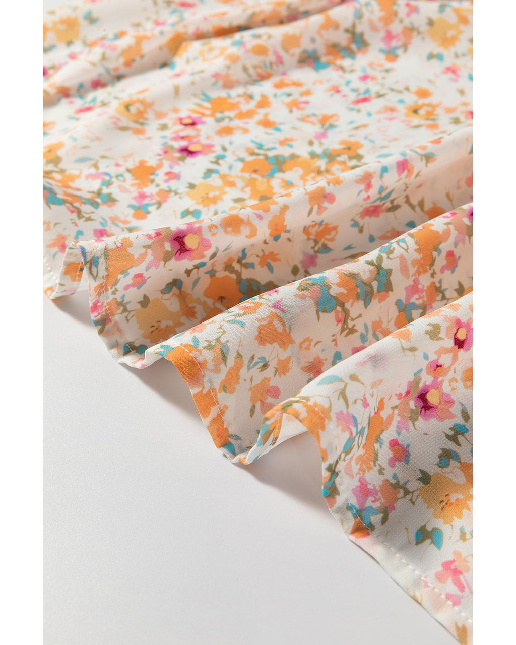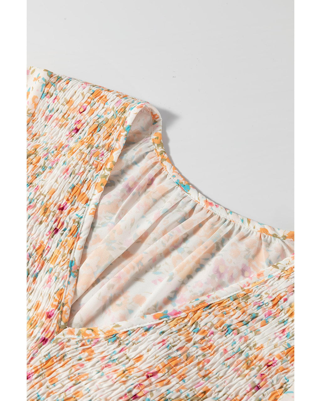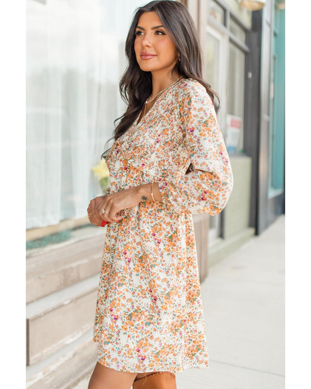 Yellow Boho Floral V Neck Ruffled Empire Waist Long Sleeve Mini Dress - L