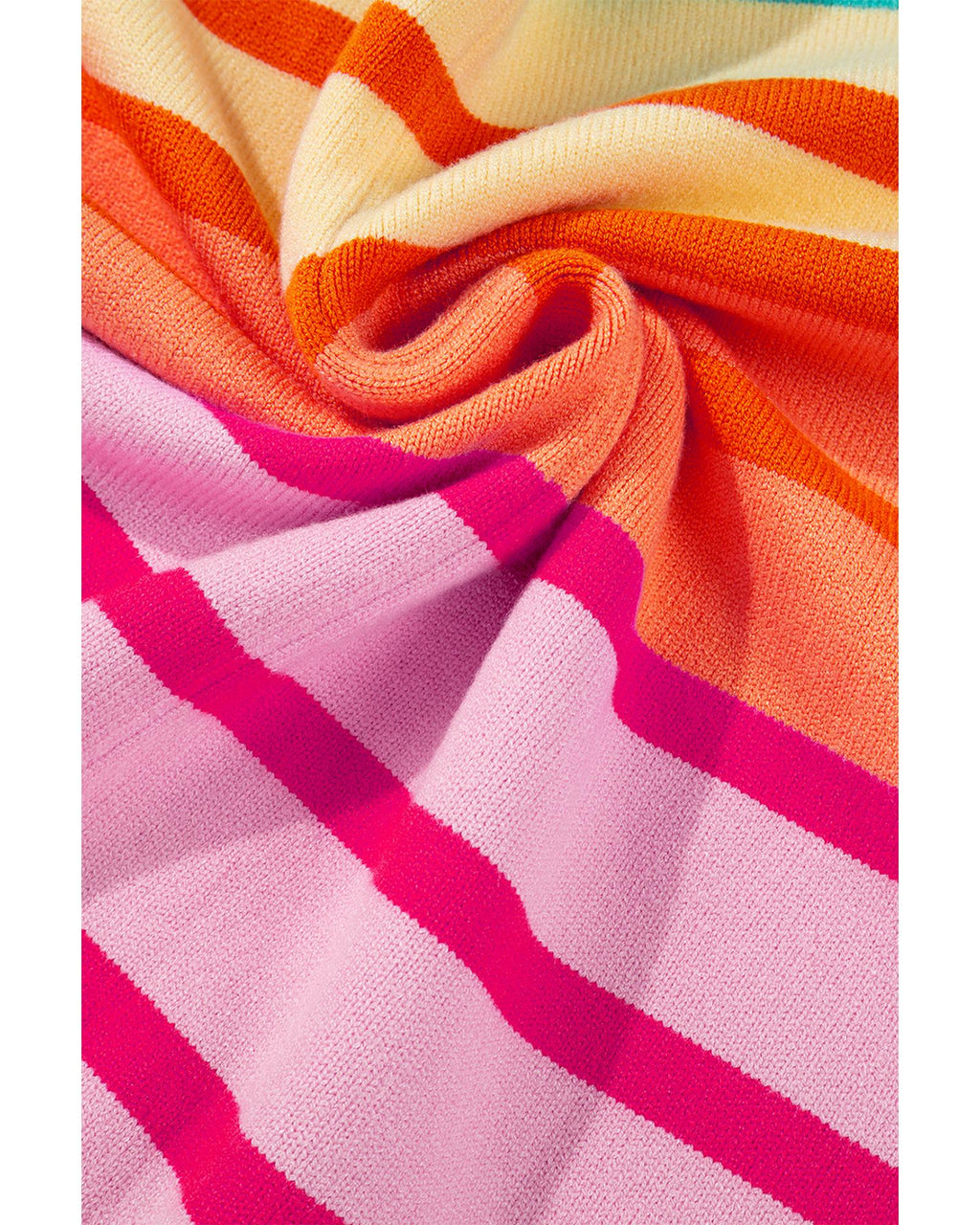 • Yellow Stripe Gradient Striped Ribbed Edge Loose Sweater