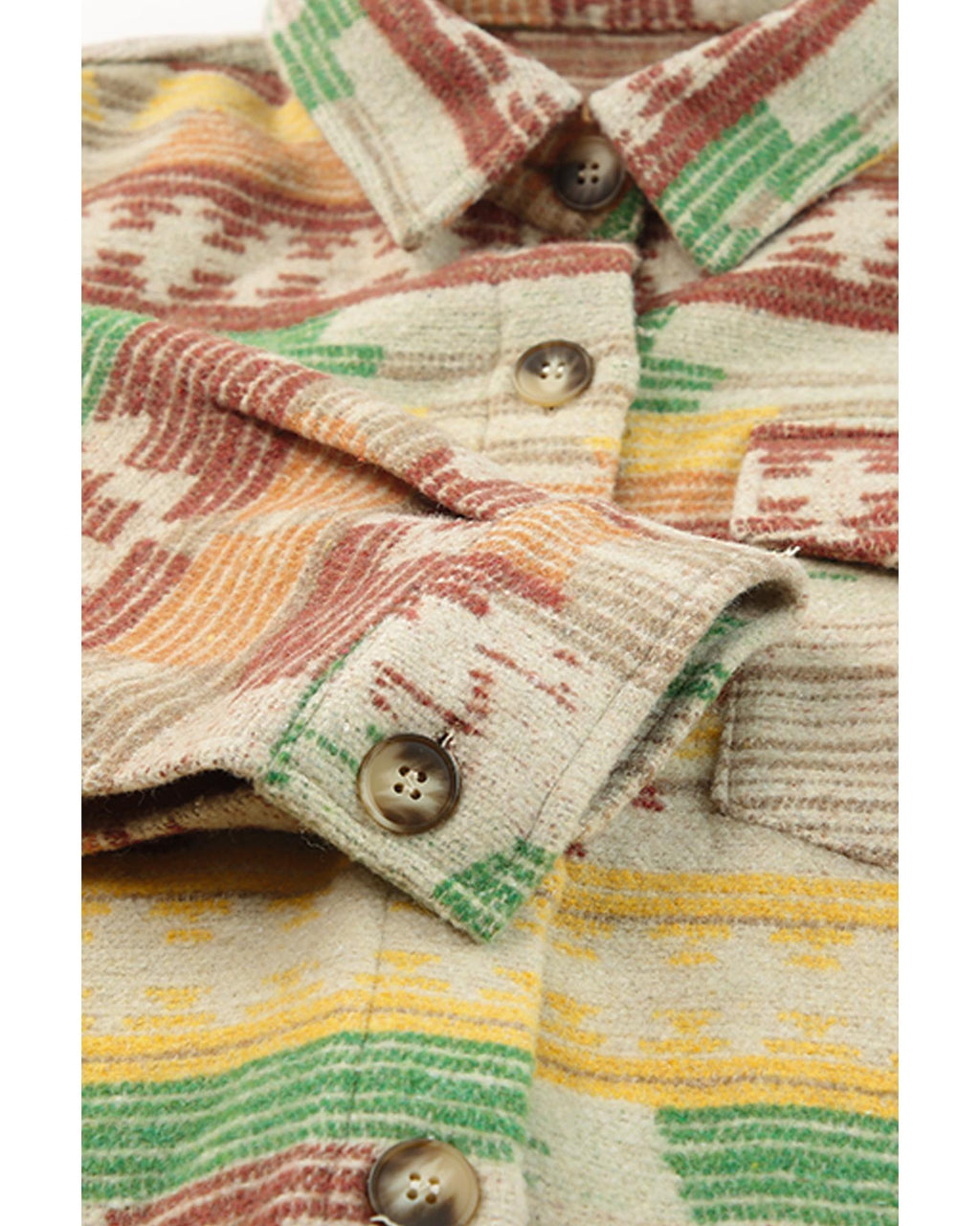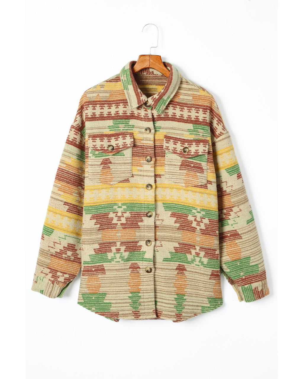 Yellow Western Aztec Print Button Flap Pocket Shacket - 2XL